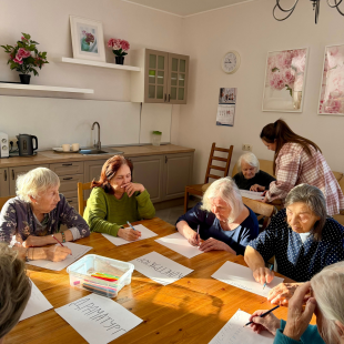 За окном тихо идёт снег..А у нас в домах тепло,светло и по-домашнему спокойно.В утренней программе дня занятия с организатором досуга Полиной.Занятия с организатором досуга-это и полезно,и интересн