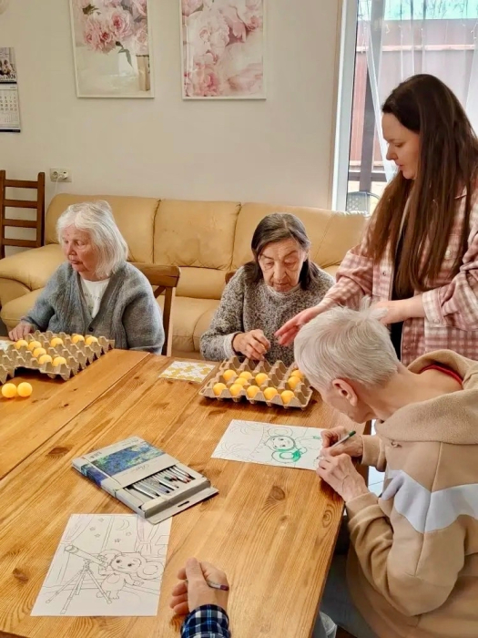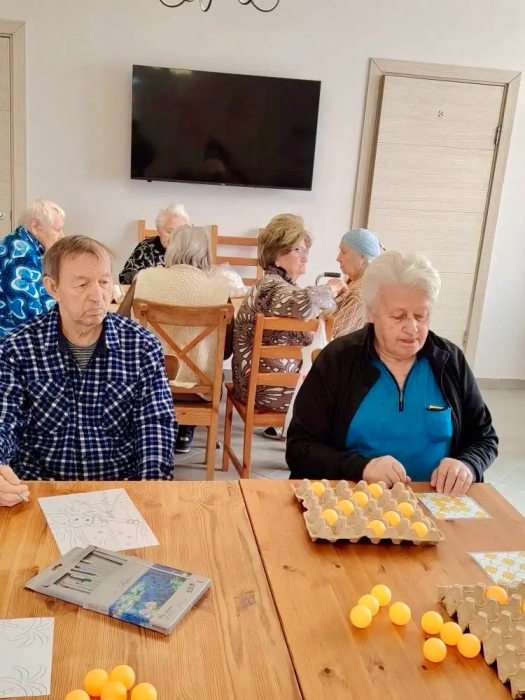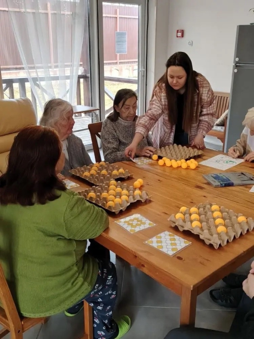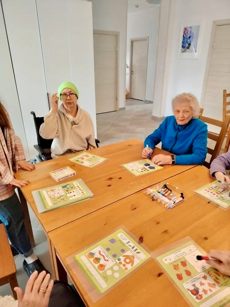 Для нас занятия с организатором досуга это не просто возможность занять чем-то свободное время постояльцев,а важная и полезная часть дня.За такими,на первый взгляд,простыми заданиями стоит большая польза:развивается память,внимание,мышление,логика,тренируется мелкая моторика,координация и работа рук.Человек раскрашивает,подбирает,сравнивает,ищет решение-в этот момент активно работает мозг,а вместе с ним поддерживаются и важные повседневные навыки.Для пожилых людей такие занятия особенно важны.Они помогают дольше сохранять ясность ума,интерес к жизни,уверенность в себе и внутренний тонус.А ещё это про радость общения,про улыбки,про ощущение:«у меня получается»,«мне интересно»,«я могу».И именно из таких простых,тёплых моментов и складывается настоящая забота-не только о физическом состоянии,но и о душевном и ментальном благополучии каждого пожилого человека!