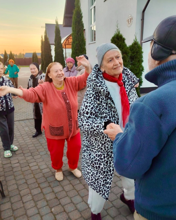 Танцевальная зарядка на свежем воздухе!Активность,которую любят все наши постояльцы!Что может быть задорнее весёлых танцев с любимыми друзьями на свежем воздухе?Пожалуй,ничего!Хорошо проведенное время- это время проведённое с пользой и с удовольствием!