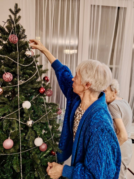 Наши ёлочки уже чувствуют приближение праздников и срочно просятся наряжаться!Мы в деле!Для кого-то это знакомое с детства занятие-почти игра,а для кого-то особенный,трепетный момент,который возвращает в тёплые воспоминания и детство.В такие минуты пространство наполняется не только праздничным светом,но и ощущением уюта,заботы и причастности.Это не просто украшение ёлки-это возможность почувствовать:я нужен,я участвую,это мой дом..И давайте будем честны:хоть и говорят,что ёлку украшают игрушки,на самом деле это не так.Её украшают люди,которые делают это с любовью!Поэтому мы искренне считаем,что наши ёлки самые красивые-их украшают наши любимые постояльцы!