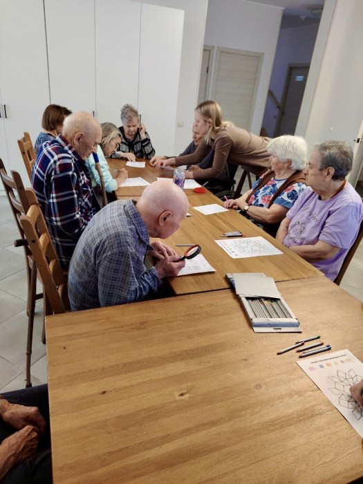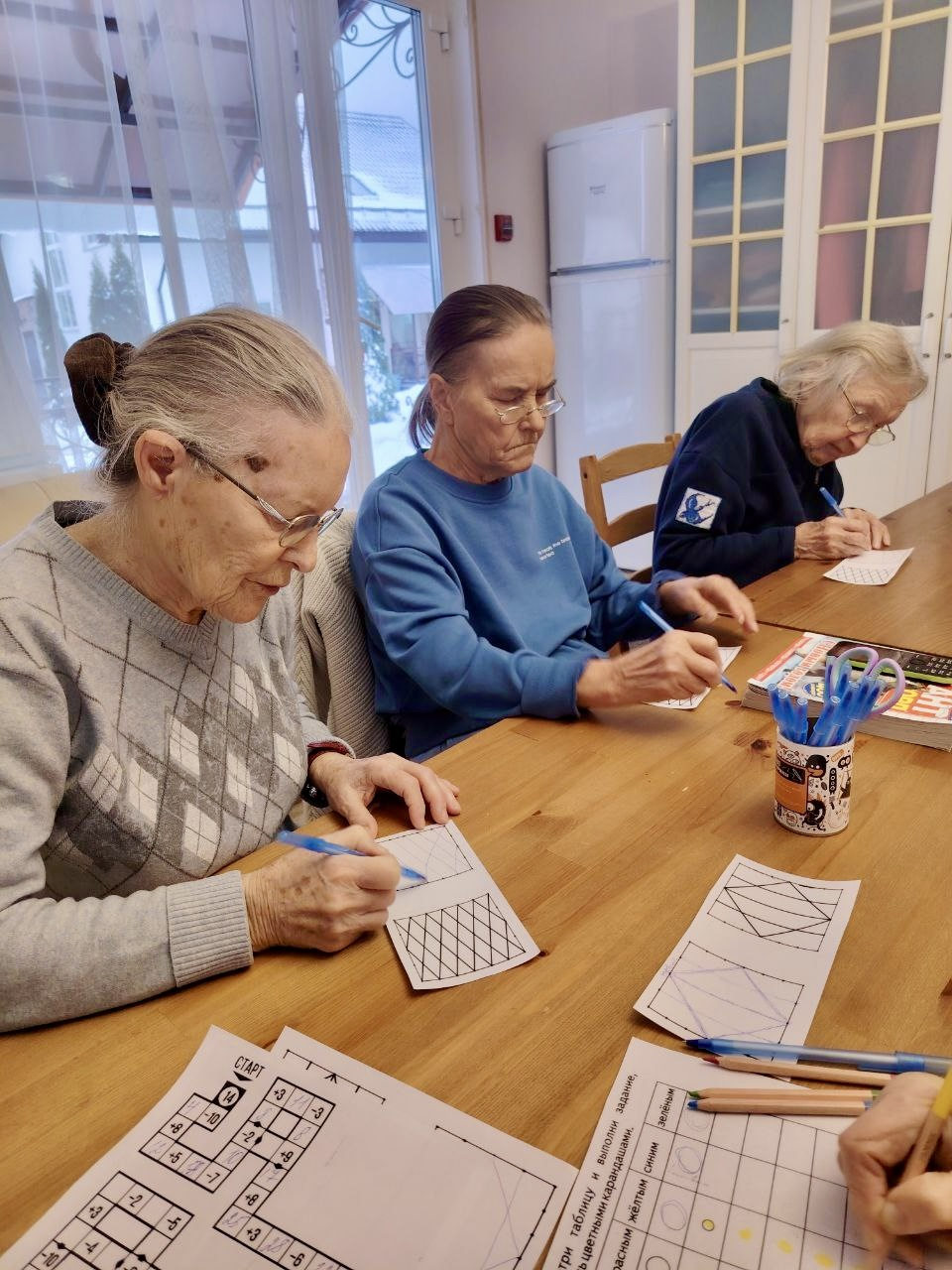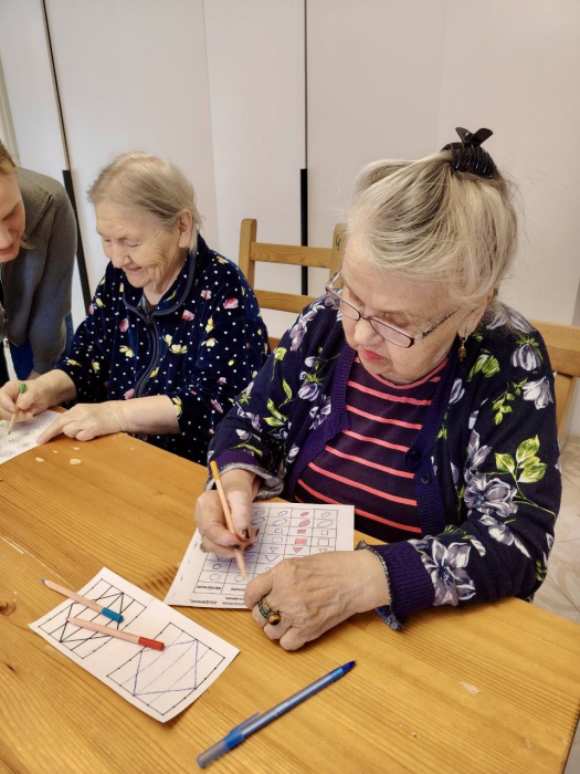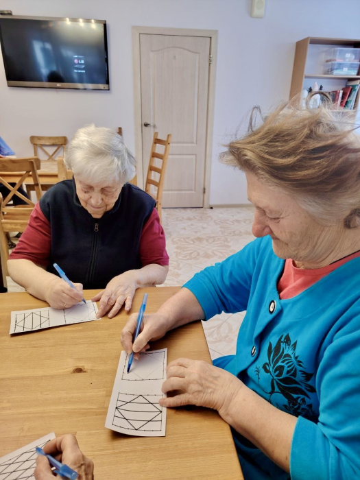 За окном тихо идёт снег..А у нас в домах тепло,светло и по-домашнему спокойно.В утренней программе дня занятия с организатором досуга Полиной.Занятия с организатором досуга-это и полезно,и интересно.Они тренируют внимание,память,мелкую моторику.Но самое ценное-мы делаем это вместе..В такие моменты чувствуешь:не так важно,какая погода за окном,если рядом дорогие сердцу люди,тепло и общее интересное дело.Желаем всем доброго и продуктивного дня!