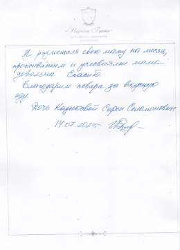 Я, Васецкая Лидия Васильевна, выражаю глубочайшую благодарность заведующей пансионата, сиделочкам, которые ухаживали за моим мужем, который был совершенно беспомощным, ухаживали в течение полугода, муж был всегда чистый, намыт, побрит и накормлен (специально пищу пропускали через блендер). Большое спасибо Валентине Максимовне, у которой всегда все под контролем.
